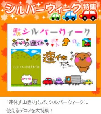 コンテンツ内容:「連休」「山登り」など、シルバーウィークに使えるデコメを大特集!