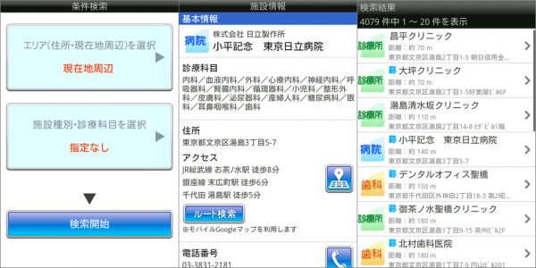 全国の病院や診療所などの医療施設が簡単に検索できる無料のアンドロイドアプリです。