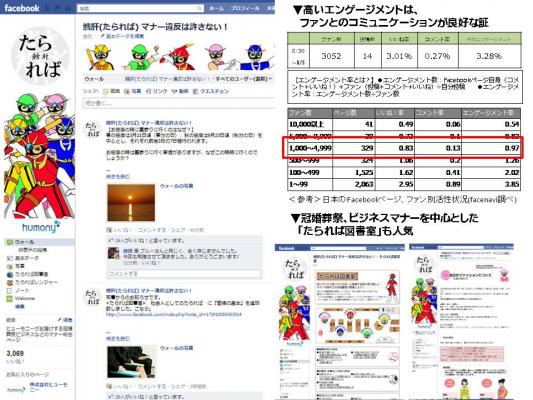 (1) 5人の「たらればレンジャー」がマナーや豆知識の専門分野に分かれ、毎日ファンに役立つ情報を提供しています。また、ファンからの質問や疑問にも、このFacebookを通してレンジャー達が答えています。