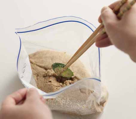 そこでフリーザーバッグでぬか漬けを作る方法は、管理も簡単なので、これまでぬか床作りに躊躇していた人でも手軽にぬか漬け作りが楽しめます。日本ならではの優秀な栄養補給食品であるぬか漬け文化の伝承に、このような方法があったのか・・・と感心しています。酵母菌は広く分布していますので、あなたの手の酵母菌もぬか床の成熟を進め、あなただけのオリジナルなぬか床にします。たまには“素手の手入れ”もして、マイぬか床を育て続けましょう。