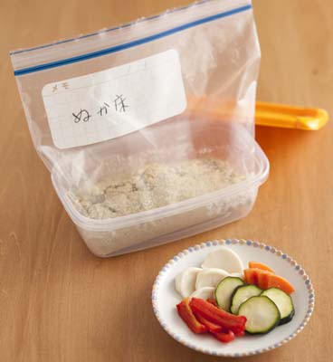上記のように、ぬか漬け作りには興味があるけれど、「手入れが大変そう」「面倒くさい」などの理由から、躊躇してしまう人が多いようです。そこで、手軽に作れて、お手入れも簡単な「フリーザーバッグ ぬか床作り」をご紹介します。