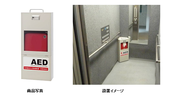 また、「AEDコンパクトボックス」はコンパクト設計のため、エレベーター以外にもオフィスの受付など限られたスペースにも設置可能です。