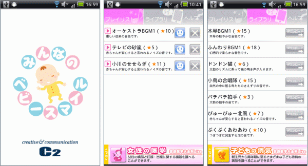 株式会社C2(シーツー)(URL:http://www.c2inc.co.jp 東京都文京区湯島 代表取締役 安田昭夫)は2011年9月9日(金曜日)、ドコモマーケット(ドコモマーケット→コンテンツ一覧→健康/フィットネス→ポケットメディカ)において無料アプリ「みんなのベビースマイル」の配信を開始しました。