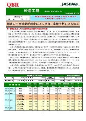 12年3月期第1四半期(11年4-6月)の連結業績は,売上高1,457百万円(前年同期比24%増),営業利益231百万円(同65%増)となった。売上高は,新規連結の牧野工業を除いても2桁増収。震災後の顧客の生産水準低下などにより苦戦を見込んでいたが・・・