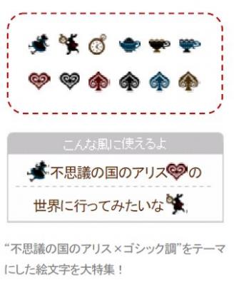 コンテンツ内容:“不思議の国のアリス×ゴシック調”をテーマにした絵文字を大特集!