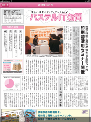 創刊3年で約57,000部を発行中の幼稚園・保育園の先生向け無料IT専門紙『パステルIT新聞』(http://itnews.passtell.jp/)は、2011年9月20日にiPhoneやiPadでも無料購読できるアプリ版(電子版)をApp Storeに公開しました。