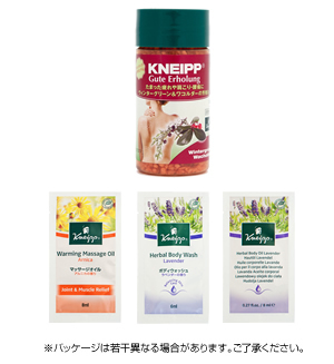 ドイツでクナイプが生まれてから、今年2011年で120周年。それを記念して、日本未発売の「グーテエアホールング バスソルト ウィンターグリーン&ワコルダーの香り」をプレゼントします。クナイプお勧めのボディケアアイテム3種類もついています。
