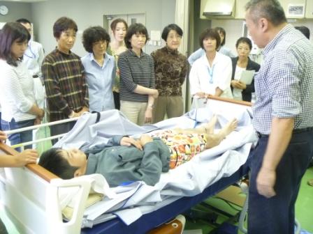 居宅介護支援および訪問介護のケアマネジメントを行っているトータルライフサポートちぎら(東京・八王子)の登録ヘルパー向けの月例定期研修会において、寝たきりの方への入浴介助のサンフランの湯ラックスを使ってのデモンストレーションを9月25日(日)に実施。一連の入浴介助の実演を行いながら、サンフランの湯ラックスの扱い方を全員で学んだ。