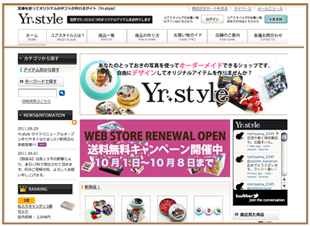 子供服のナルミヤ・インターナショナルとのコラボレーション「レインボーパーク」の直営店舗展開やチロルチョコとのコラボレーション「DECOチョコ」など多数のWebサイトを運営している株式会社MACスタイル(東京都台東区、代表取締役会長 坂本充章)は、同社が展開しているオーダーメイド・ギフト・サイト「Yr.style(ユアスタイル)」の大幅なリニューアルを行い、本年10月1日にリニューアル・オープン致します。同時に、昨年2010年10月に銀座にオープンしたリアルショップYr.style・銀座店も開店1周年を迎えることから、同月8日より“オープン一周年記念キャンペーン“を開催。これまでより更に使いやすく、お買い物が楽しくなったサイト&ショップのご注文システムをPR致します。