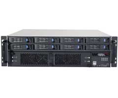 RS3XE3R8BRシリーズの奥行きは44.5cmと非常にコンパクトながら、8台までの3.5インチSAS/SATAディスクやSSDが装着可能なリムーバブル・ベイを装備。6Gbpsディスクの安定した動作を保証する高帯域ディスク・バックプレーンは、ホットスワップ機能にも対応。15.000回転のディスクも使用可能。各ドライブのアクセス状況やステータスをLEDで表示。
