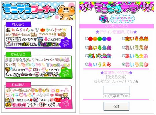 ・自由に文字を入力して、自分だけのオリジナルデコメがつくれる「デコツール」が何度でも使い放題。絵文字やミニデコなど様々な動きやデザインのバリエーションを豊富に揃えています。