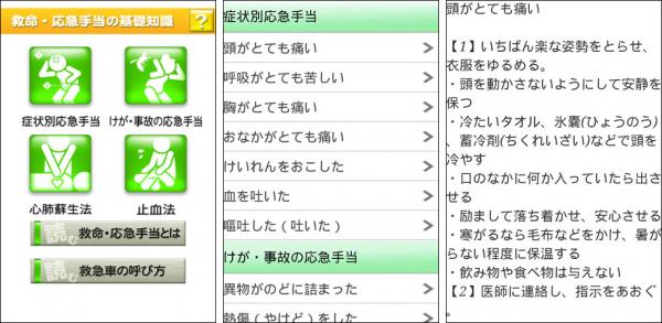 本アプリは、Android初の一般向け医学事典アプリ「家庭医学大全科」から、「救命・応急手当の基礎知識」のパートを抜粋したものです。症状別の応急手当、けが・事故の応急手当、心肺蘇生法、止血法などが確認でき、病気やけがをした人を救急隊員や医療機関に引き渡すまでの基礎知識として最適です。