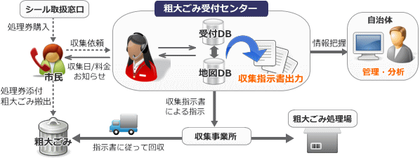 粗大ごみ収集依頼の受付業務と、ごみステーション管理機能を備えた、