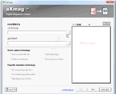 aXmagは一度購入すると、無制限に電子ブックを作成できます。 aXmagは自由に販売できます。CDで販売することもできます。現在、日本で販売されている数少ない電子ブック作成ソフトの中で aXmagは桁違いの低価格 40,000円です。 aXmagは、印刷業者・出版社・Web作成業者・結婚式場の電子アルバム・地域コミュティー誌・自治体の広報など幅広い業務に活用していただけます。
