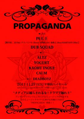 ROVOの勝井祐二、GROOVEドラマー沼澤尚、天才プロデューサー森俊之、超絶即興ベーシストナスノミツルの四人に加え、鬼才MIXエンジニアKAMIYANNを迎えておくる完全即興PARTYバンド”四天王”の初LIVE、そしてメタモルフォーゼでの7年ぶりのLIVEが幻となった”DUB SQUAD”、更にCLUBシーンを代表する超豪華DJ陣によるサンデーアフタヌーンパーティー”PROPAGANDA”が11/27(SUN)に開催!