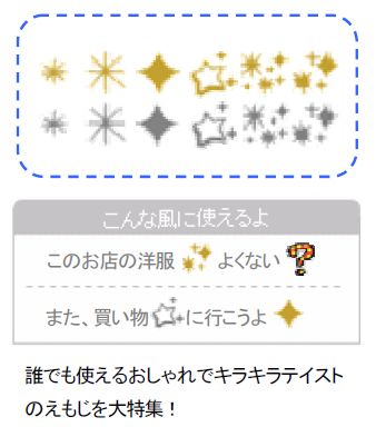 コンテンツ内容:誰でも使えるおしゃれでキラキラテイストのえもじを大特集!
