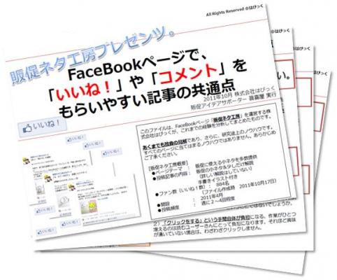 株式会社はぴっくは、運営しているFaceBookページ「販促ネタ工房」の記事を分析し、その内容をまとめたファイルを期間限定で公開しました。『FaceBookページで「いいね!」や「コメント」をもらいやすい記事の共通点』ファイルを、10月31日(月)まで、無料でダウンロードできます。