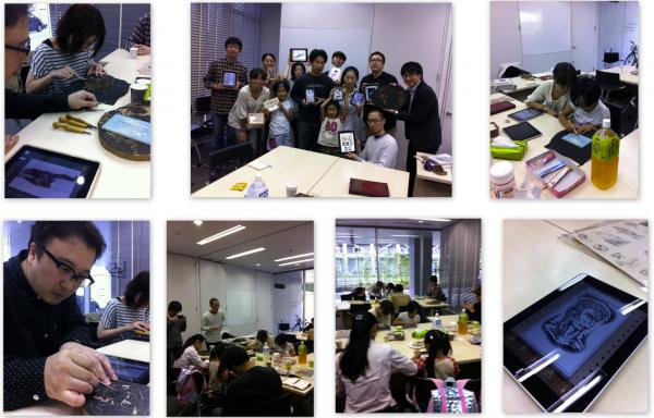 株式会社フィジオスは、2011年10月8日(土)に東京大学アントレプレナープラザにて、iPadを使った「デジタル版画教室」を開催いたしました。版画教室には、木口木版(こぐちもくはん)の版画家”二階武宏”先生をお迎えし、版画の歴史や上手な版画の彫り方などをご説明いただきました。