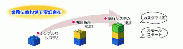 最初はシンプルな機能のシステムからスタートし、業務の変化に合わせて独自の機能を追加したり、