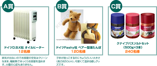 ・本キャンペーンのご当選者は、同時期に行う(株)クナイプジャパンのキャンペーンに当選できない場合がございます。