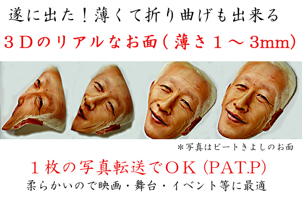 とてもリアルなお面で、薄さも1~3mm(従来の弊社のソフト樹脂の場合5mm以上)