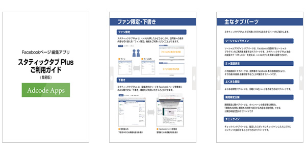 Facebookページ活性化支援の株式会社アドコード(本社:東京都港区、代表取締役:古川大輔、以下アドコード)は、無料の多機能Facebookページ編集アプリ「スタティックタブPlus(プラス)」の基本がわかるiPhoneアプリ「スタティックタブPlusご利用ガイド」をリリース致しました。