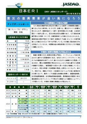 12/5期会社業績予想は東日本大震災による経済への悪影響を慎重に織り込んでおり保守的。1Q(6-8月)決算では,震災のマイナス影響は特にみられず,営業利益が3.1億円(前年同期比86.2%増)と会社計画を1.6億円上回った。足元の受注状況も順調であり・・・