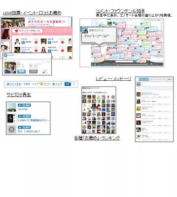 『OKMusic』のコンセプト「全員参加型・ソーシャルミュージックサイト」体現する機能「コメントファウンテン」を通じて、『OKMusic』上でコンサート会場の盛り上がりをみんなで作り上げていくことができます。クリエーターとリスナーが音楽というコンテンツでつながって一体感を演出できるのが特長です。