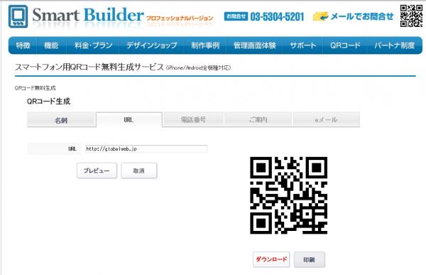 スマートビルダーをご利用のお客様でも、利用されていないお客様でもスマートフォンQRコードの生成は無料で可能です。