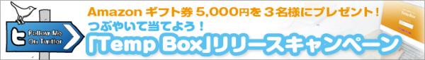 電子メール暗号化&誤送信防止システム「Temp Box」のリリースを記念し、『3つつぶやいてAmazonギフト券5,000円分を当てよう!Twitterキャンペーン』を2011年11月1日より実施いたします。
