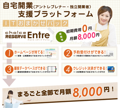 「Choice RESERVE Entre」は、月額8,000円でご利用いただけるクラウド型インターネット予約システムです。「Choice RESERVE Pro」の全機能を、予約利用回数が少ない個人事業者に絞ることで低価格化を実現しました。「Choice RESERVE Entre」の開発元である株式会社ビットリンクの“ビット”は“個人”を意味します。個の時代の到来に、頑張る個人を応援する社風から生まれたプロダクトです。忙しいアントレプレナーを応援する為に、多機能予約システムを低価格でご用意いたしました。