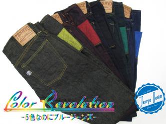 国産ジーンズで有名な岡山県倉敷市を拠点に高品質な国産ジーンズを企画販売する「倉敷天領デニム(TENRYO DENIM)」から インディゴブルーのジーンズで5色展開という新企画のオリジナルデニムを使用した「カラーレボリューション」ジーンズを発売する。