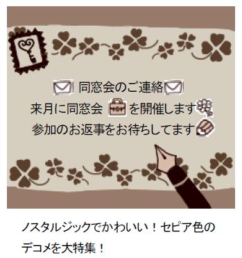 コンテンツ内容:ノスタルジックでかわいい!セピア色のデコメを大特集!