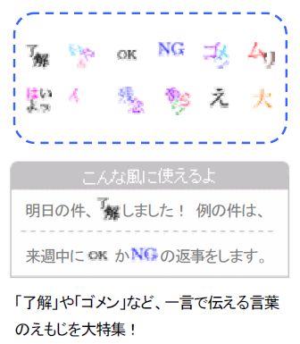 コンテンツ内容:「了解」や「ゴメン」など、一言で伝える言葉のえもじを大特集!