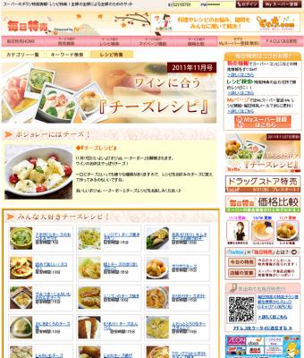 チラシがなくても特売情報がPC/携帯で見ることの出来る「毎日特売」では、お手軽・簡単な料理レシピを3,000種類以上持っています。