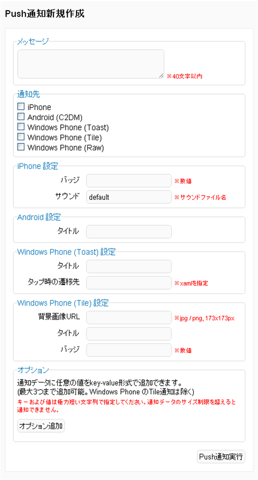 その他のプッシュ送信関連のサービス