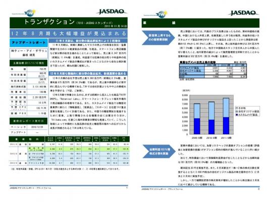~12年8月期も積極的に新分野の製品拡充,新規展開を進める~