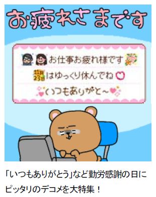 コンテンツ内容:「いつもありがとう」など勤労感謝の日にピッタリのデコメを大特集!