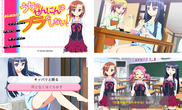 『うちのせんにんはブラをしない』は、ごく普通の女子高生・桜田真帆(さくらだまほ)と、真帆の家に居候する美少女系仙人・桃山ゆわた(ももやまゆわた)を中心に繰り広げられる不思議系美少女アドベンチャーです。