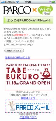 パルコ・シティでは、専用のアクセスポイント経由でインターネット接続したユーザーに対して、ランディングページでの最新情報・イベント情報の提供を行います。
