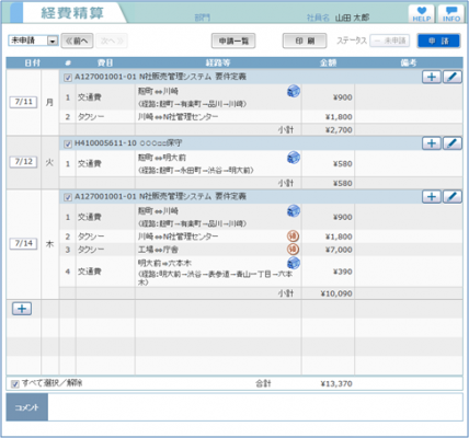 経費精算の印刷時にエビデンスで必要となる「申請日」「精算日」「最終承認日」「最終承認者」を印字するように変更しました。また、経費入力で交通費を金額0円でも登録できるように変更しました。
