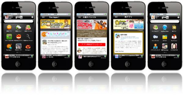 事業内容 iPhone,Android向けアプリポータル「giveApp(ギブアップ)」の運営
