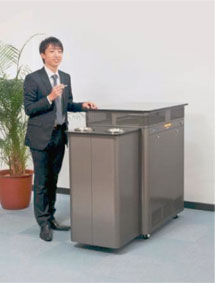 そうした社会環境のなかで、オフィス、公共スペースでの分煙対策は、2003年5月の「健康増進法」の施行と「新しい職場における喫煙対策のためのガイドライン」の発表以降、ガイドラインに適合した排気設備や仕切りを備えた喫煙室の設置が求められています。そのため、スペースや費用の兼ね合いから、喫煙場所が限定されますので、喫煙室の数は集約傾向にあります。2ヶ所あった喫煙所が1箇所になると、2倍の喫煙者が一つの場所に集中します。また、広い喫煙所を作ることは難しい事が多く、喫煙所に設置する換気扇、空気清浄機は、コンパクトで高い性能が求められます。