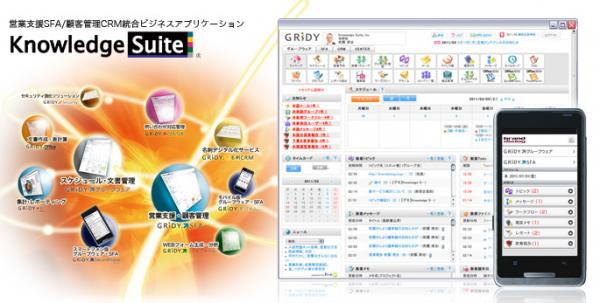 「Knowledge Suite(ナレッジスイート)とは、約10,000社の企業・団体に導入されているGRIDY グループウェアを基盤とした、SaaS型リード育成基盤 営業支援SFA/顧客管理CRM統合 ビジネスアプリケーションです。