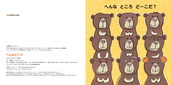 そして大人気にこたえ、シリーズ第2弾『へんなところ』の登場です。「へんなところ、どーこだ?」と間違い探しをするだけではなく、絵本に出てくる動物のなかまたちの世界に夢中になること間違いなしです。そして今回もラストはミラーのしかけつき。子どもは(大人も?)前作よりも、もっとびっくりするでしょう。親子で新体験しかけ絵本をお楽しみください。
