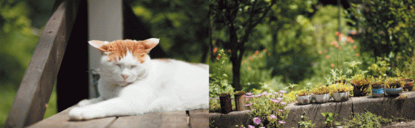 本書は、一緒に住む猫たちとの緑豊かな田舎暮らしを、