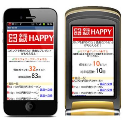 ●端末にケータイをかざしてサイトにアクセスするとスタンプが貯まる携帯ポイントカード機能