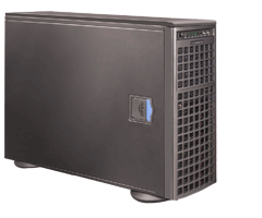 Qualest X55WS6DRPシリーズは、8台までの3.5インチ6Gbps SAS/SATAディスクおよび2.5インチSSD(1)をマウントできるホットスワップ・ベイと、1100Wの1+1のホットスワップ・リダンダント電源を標準装備していますが、その動作音は38dBと非常に静かで、一般の事務所や研究室での利用が可能な高性能ワークステーションです。ラックマウント・コンバージョン・キットの使用により、EIA規格4Uラックマウント・システムとしても運(R)用可能です。LGA-1366ソケットに対応したデュアル・コア/クアッド・コアのIntel Xeon 5500シリーズCPUとIntel Xeon 5600シリーズCPUのパフォーマンスを最大限に引き出し、快適な64bitマルチコア演算環境を提供するIntel 5520チップセットを採用しており、最大6.4GT/sのQPIを達成しています。デュアル6チャンネル構成の240ピンDIMMソケット12本には、192GBまでの1333 / 1066 / 800MHz DDR3 ECC Registeredまたは48GBまでのUn-Buffered ECC/Non-ECCメモリーが実装できます(2)。Intel 82574Lコントローラによる2系統のGbEポートは、ネットワーク・パフォーマンスと信頼性の向上に有効なIntel I/OAT3をサポートしています。また、ネットワーク経由でのシステム管理を容易にする、IPMI2.0用LANポートを装備しています。オプションの6Gbps SAS/SATA RAIDコントローラの増設により、3/6GbpsのSAS/SATAディスクを使用した、RAIDストレージ環境の構築が可能で、ペリフェラル・インターフェイスとして、8ポート(2ポートはフロント)のUSB2.0ポートと1ポートのRS232Cシリアル・ポートが用意されています。