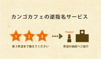 「カンゴカフェ」は、逆指名できるエリアを東京都・神奈川県・千葉県・埼玉県の首都圏広域に広げる業界初のサービスです。