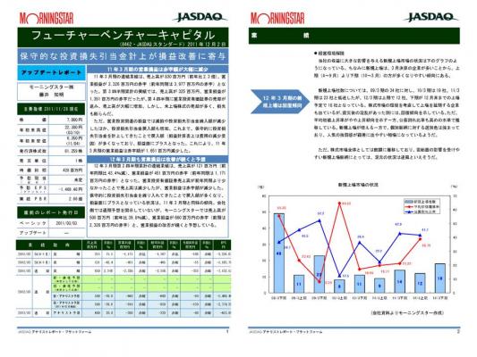 11年3月期の連結業績は,売上高が830百万円(前年比2.3倍),営業損益が2,326百万円の赤字(前年同期は3,977百万円の赤字)となった。第3四半期累計の実績では,売上高が325百万円,営業損益が1,351百万円の赤字だったが,第4四半期に営業投資有価証券の売却が進み,売上高が大幅に増加。しかし・・・